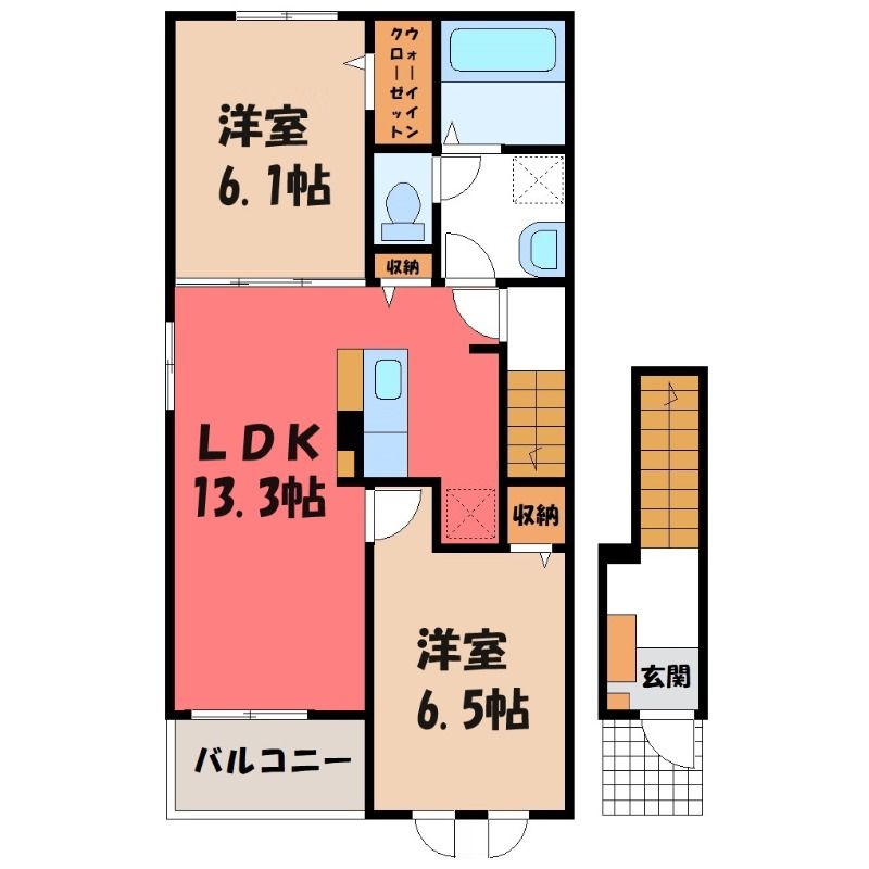 2LDK( LDK13.3畳/洋室6.1畳(*階)/洋室6.5畳(*階) ) |
