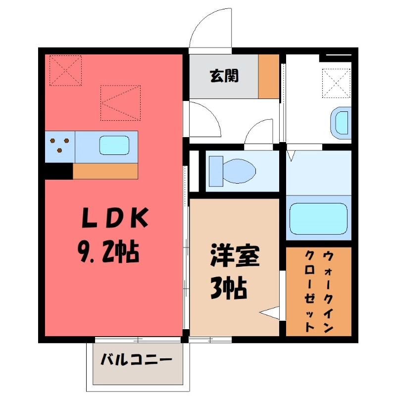 1LDK( LDK9.2畳/洋室3畳(*階) ) |