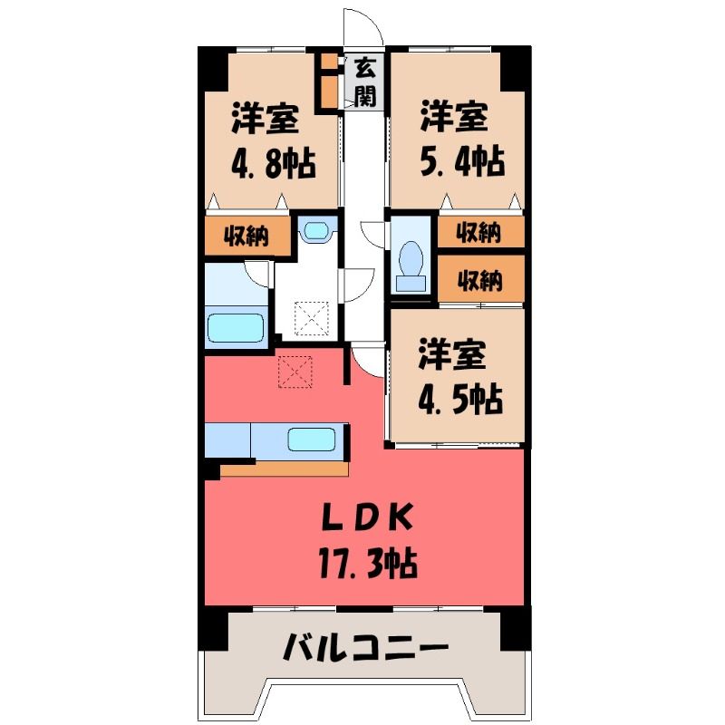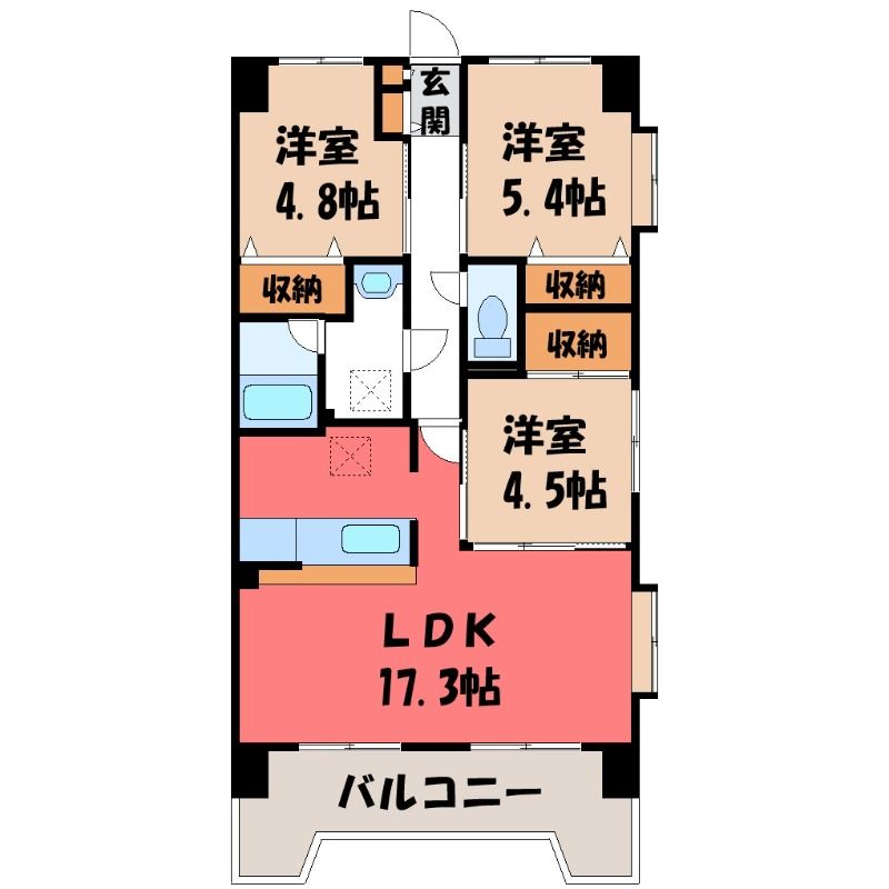 3LDK( LDK17.3畳/洋室5.4畳(*階)/洋室4.8畳(*階)/洋室4.5畳(*階) ) |