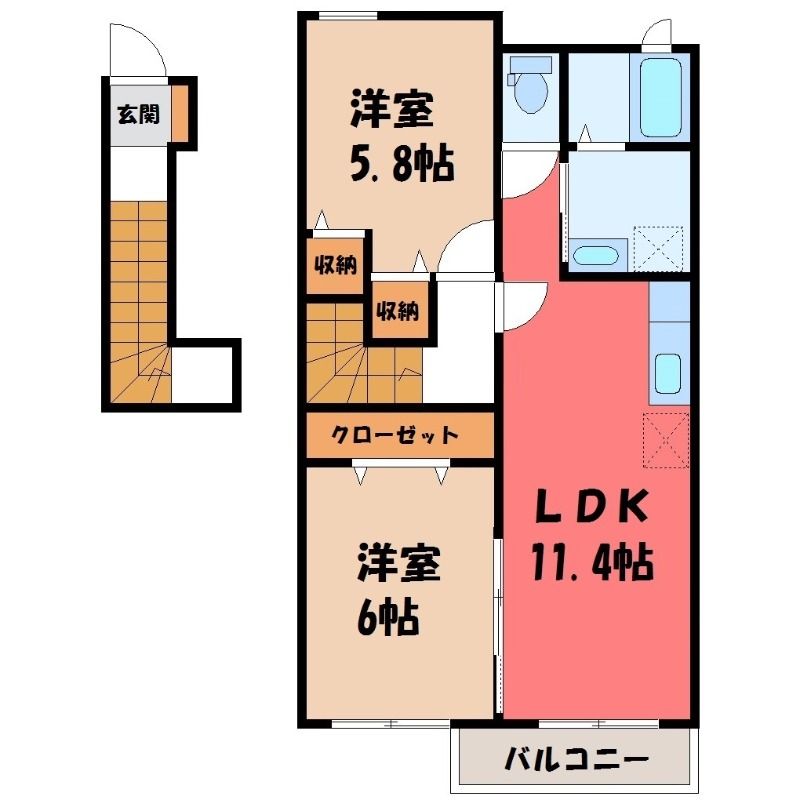 2LDK( LDK11.4畳/洋室6畳(*階)/洋室5.8畳(*階) ) |