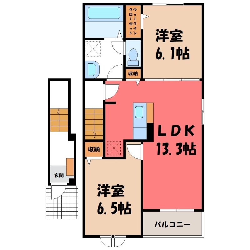 2LDK( LDK13.3畳/洋室6.1畳(*階)/洋室6.5畳(*階) ) |