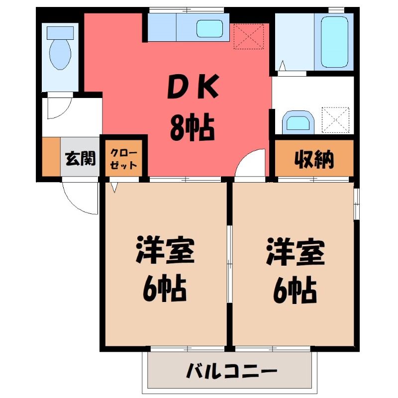 2DK( DK8畳/洋室6畳(*階)/洋室6畳(*階) ) |