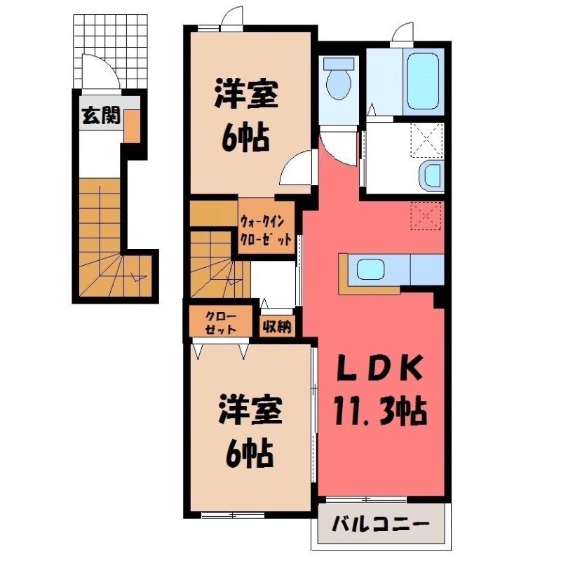 2LDK( LDK11.3畳/洋室6畳(*階)/洋室6畳(*階) ) |