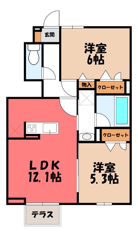 2LDK( LDK12.1畳/洋室6畳(*階)/洋室5.3畳(*階) ) |
