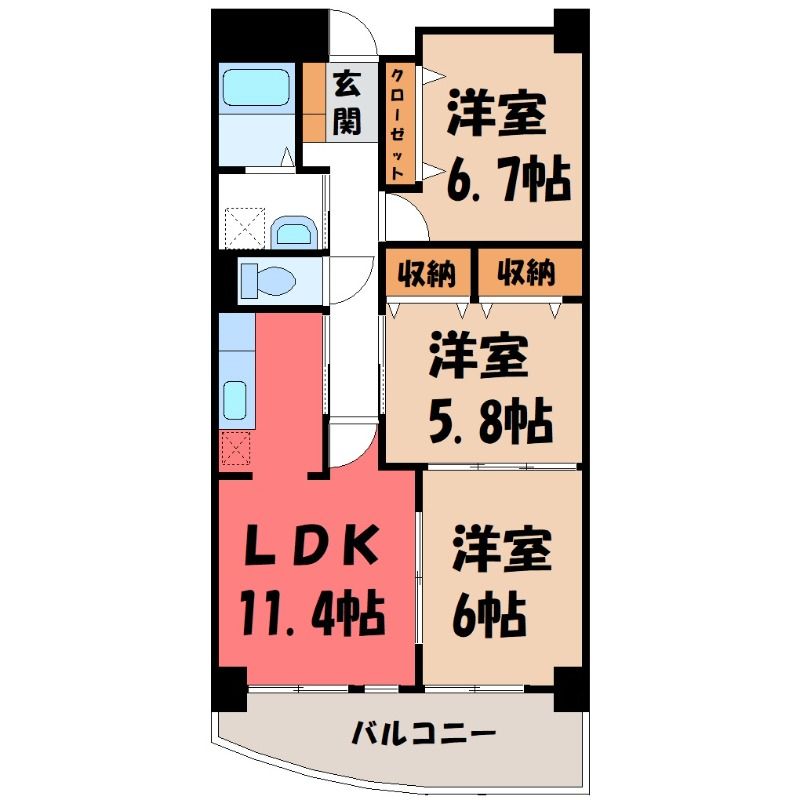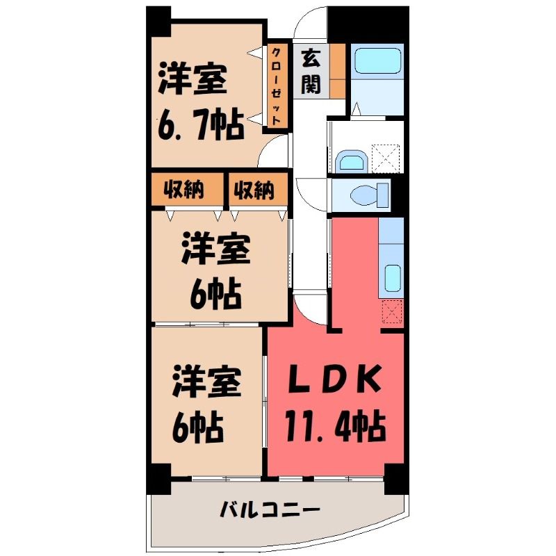 3LDK( LDK11.4畳/洋室6.7畳(*階)/洋室6畳(*階)/洋室6畳(*階) ) |