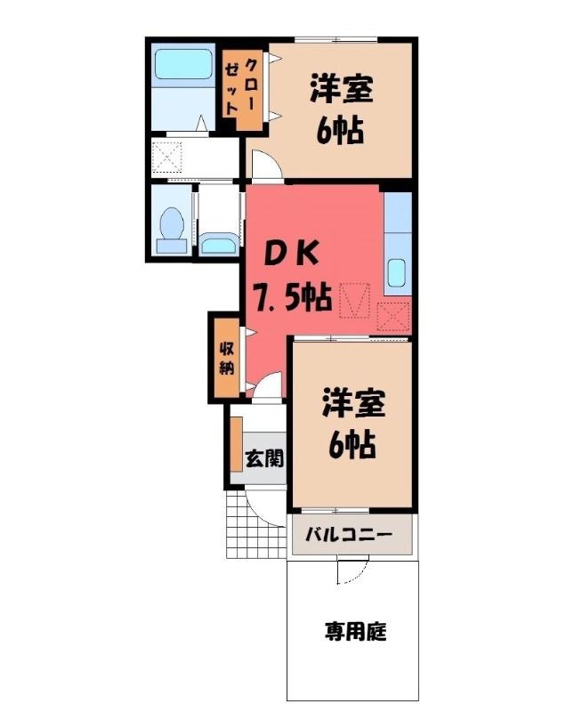 2DK( DK7.5畳/洋室6畳(*階)/洋室6畳(*階) ) |