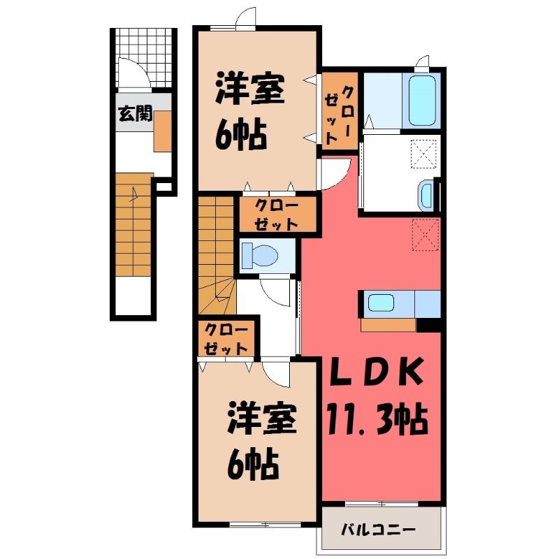 2LDK( LDK11.3畳/洋室6畳(*階)/洋室6畳(*階) ) |