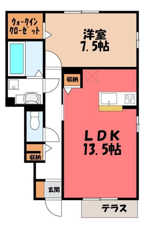 1LDK( LDK13.5畳/洋室7.5畳(*階) ) |