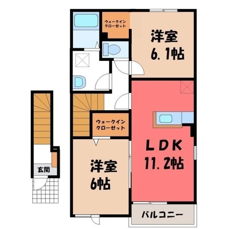 2LDK( LDK11.2畳/洋室6.1畳(*階)/洋室6畳(*階) ) |