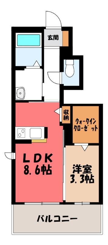 1LDK( LDK8.6畳/洋室3.3畳(*階) ) |