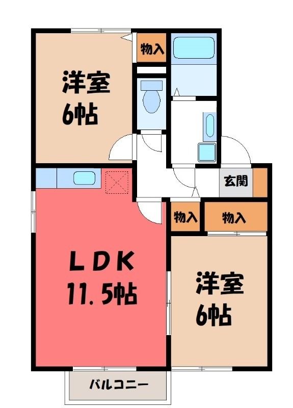 2LDK( LDK11.5畳/洋室6畳(*階)/洋室6畳(*階) ) |