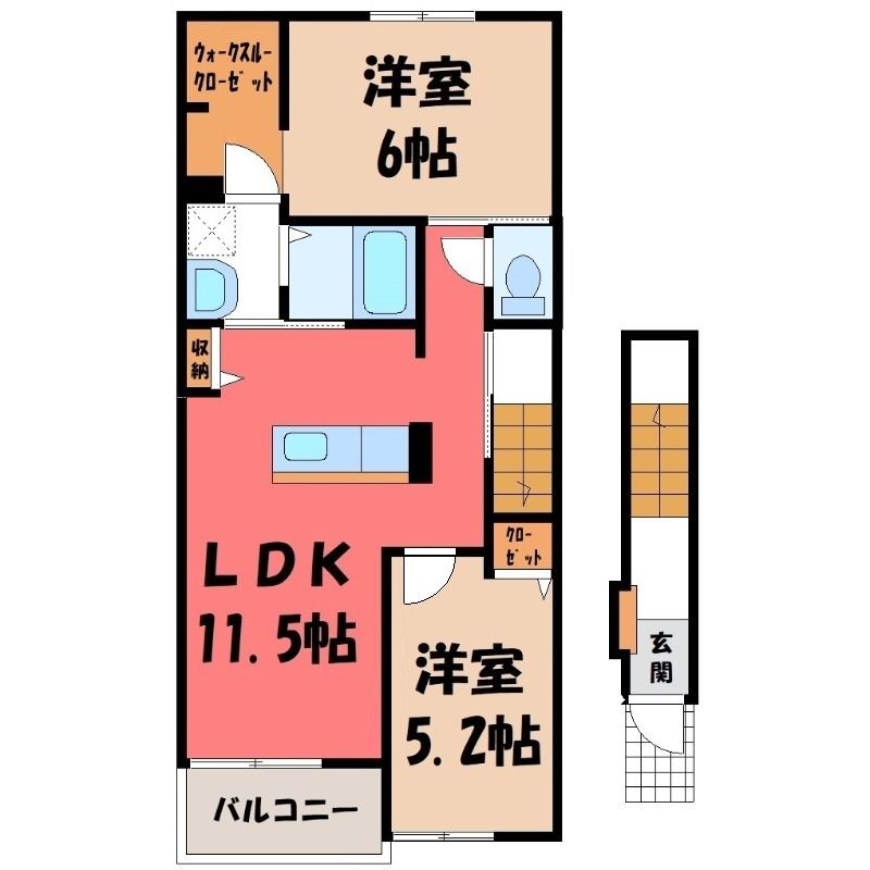 2LDK( LDK11.5畳/洋室6畳(*階)/洋室5.2畳(*階) ) |