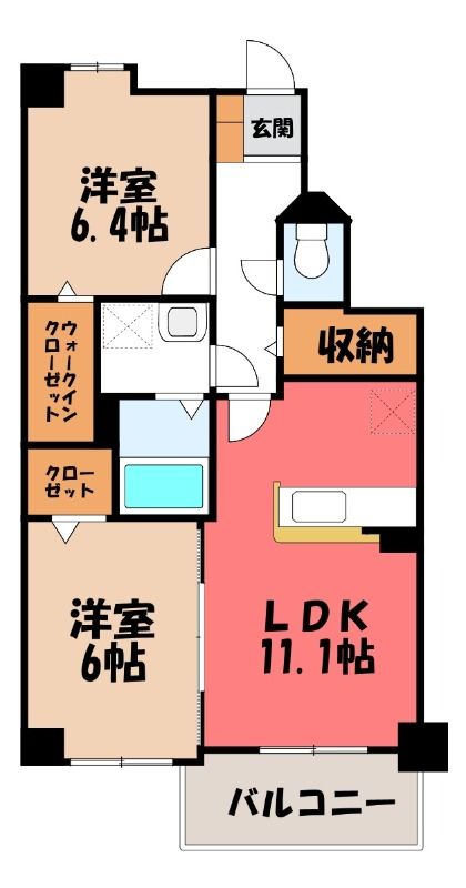 2LDK( LDK11.1畳/洋室6.4畳(*階)/洋室6畳(*階) ) |