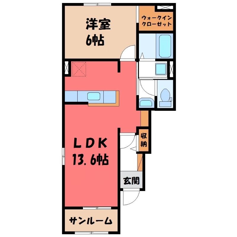 1LDK( LDK13.6畳/洋室6畳(*階) ) |