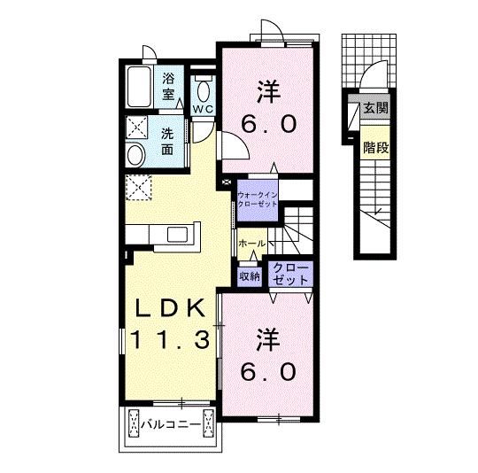 2LDK( 洋室6畳/洋室6畳(*階)/LDK11.3畳(*階) ) |