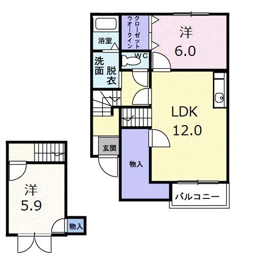 2LDK( 洋室5.9畳/洋室6畳(*階)/LDK12畳(*階) ) |