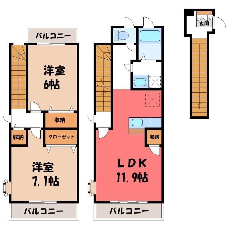 2LDK( LDK11.9畳/洋室7.1畳(*階)/洋室6畳(*階) ) |