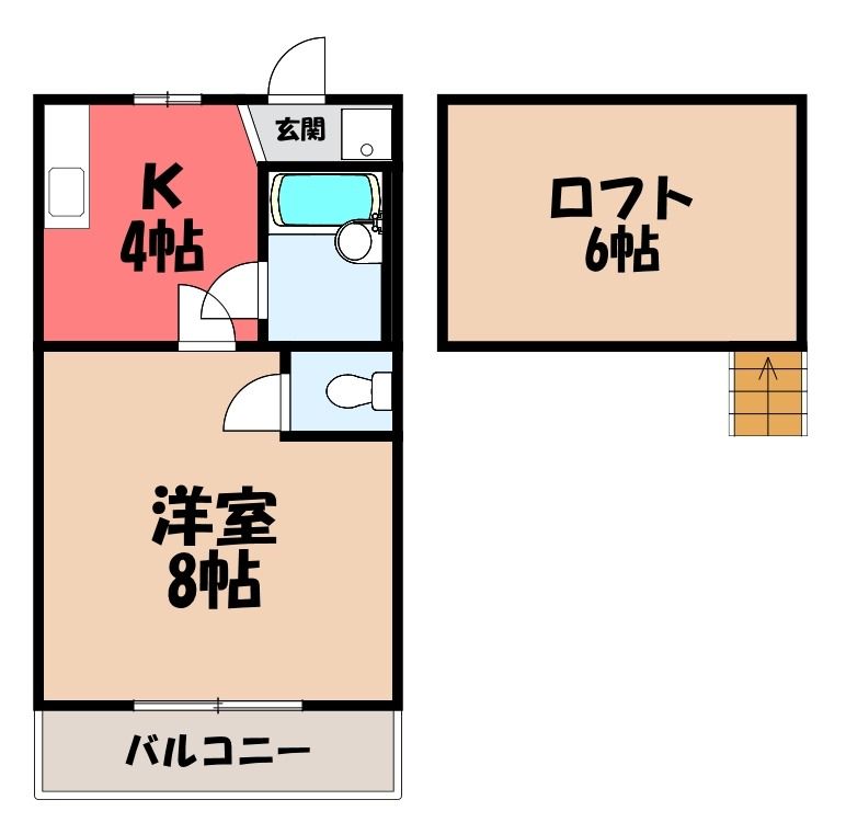 1K( 洋室8畳/K4畳(*階) ) |