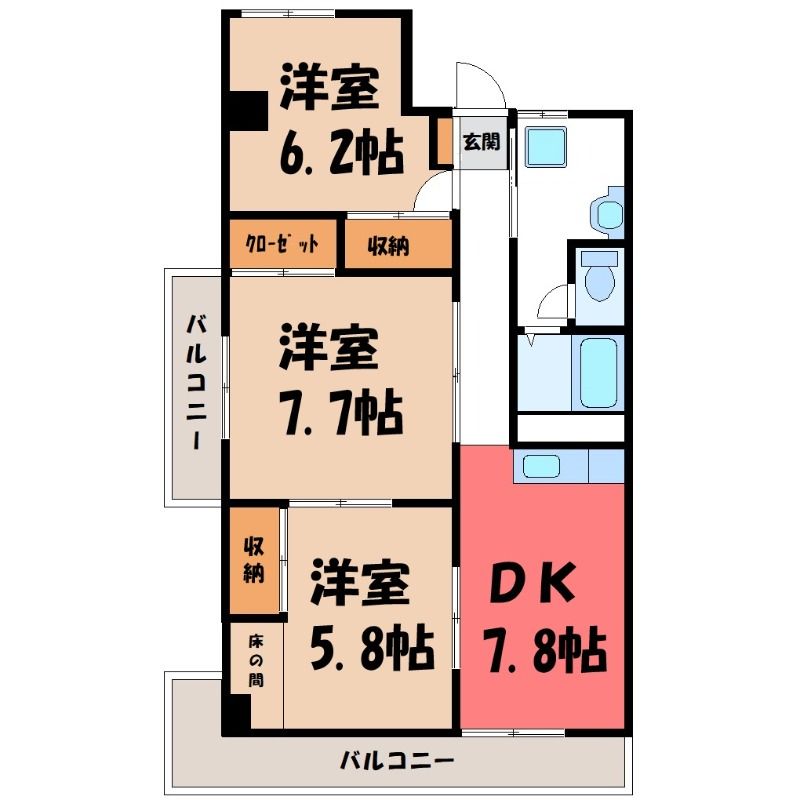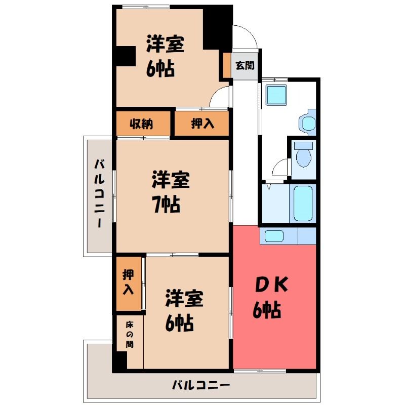 3DK( DK6畳/洋室7畳(*階)/洋室6畳(*階)/洋室6畳(*階) ) |