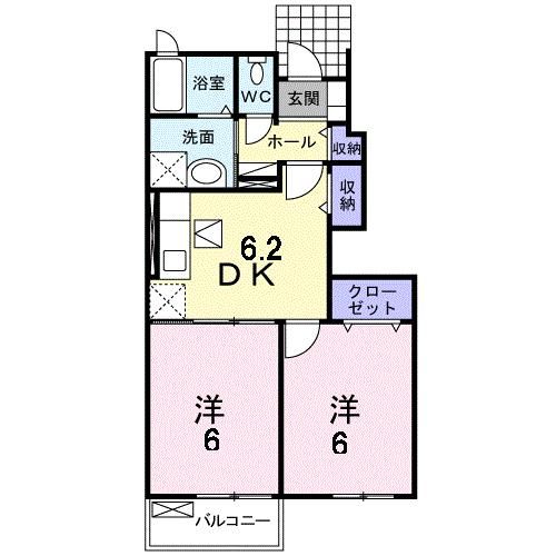2DK( 洋室6畳/洋室6畳(*階)/DK6.2畳(*階) ) |
