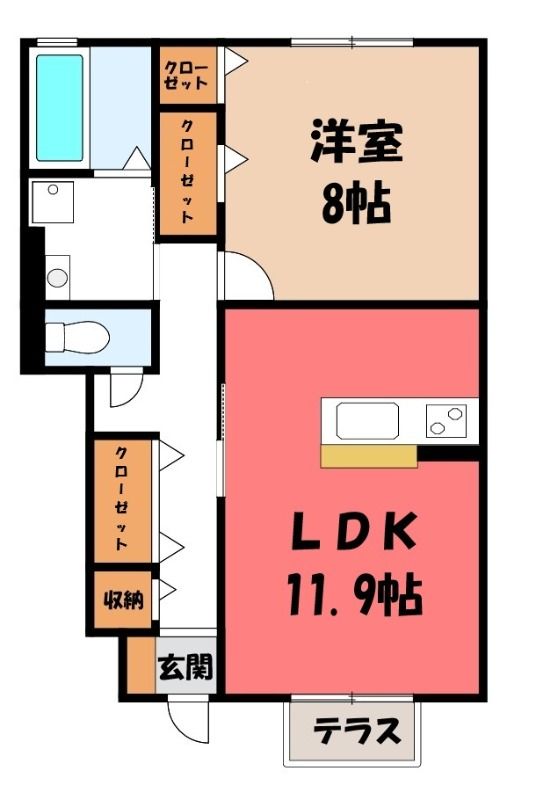 1LDK( LDK11.9畳/洋室8畳(*階) ) |