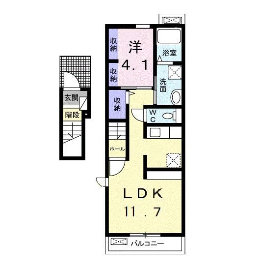 1LDK( 洋室4.1畳/LDK11.7畳(*階) ) |