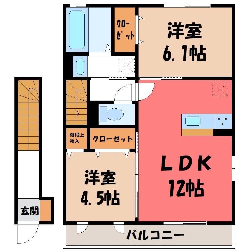 2LDK( LDK12畳/洋室6.1畳(*階)/洋室4.5畳(*階) ) |