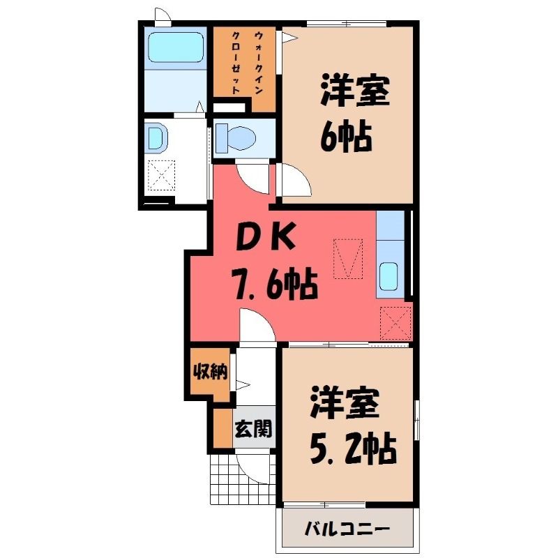 2DK( DK7.6畳/洋室6畳(*階)/洋室5.2畳(*階) ) |