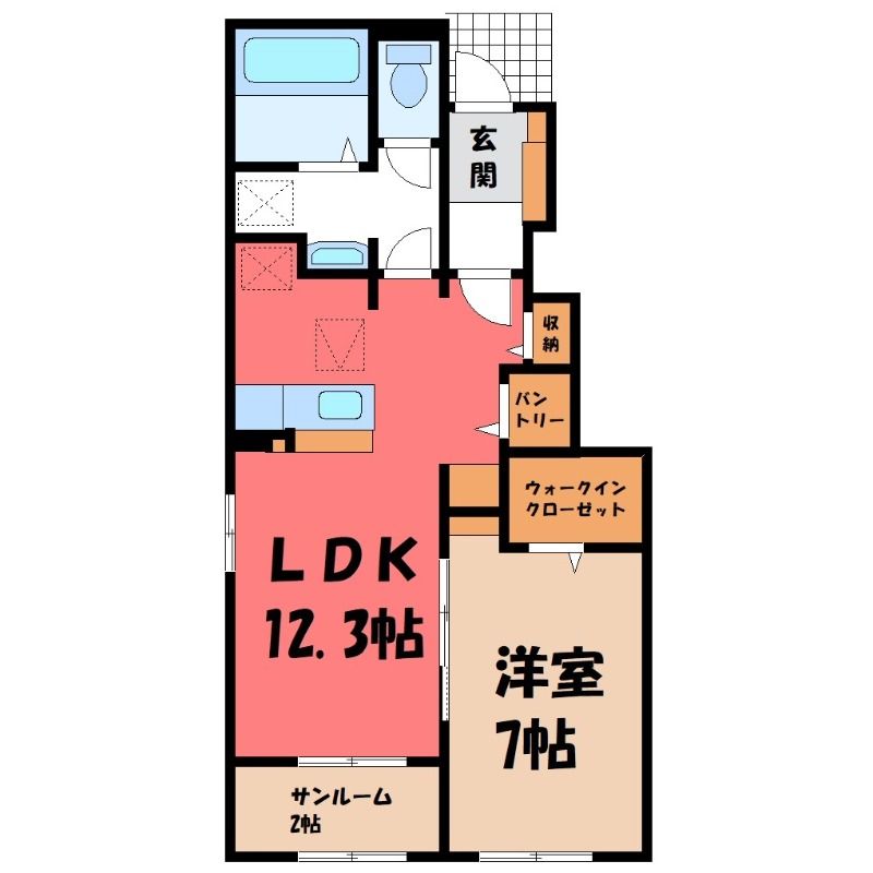 1LDK( LDK12.3畳/洋室7畳(*階) ) |