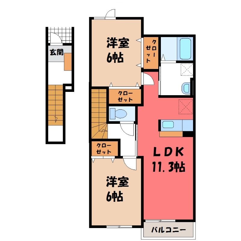 2LDK( LDK11.3畳/洋室6畳(*階)/洋室6畳(*階) ) |