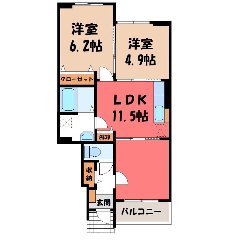 2LDK( LDK11.5畳/洋室6.2畳(*階)/洋室5畳(*階) ) |