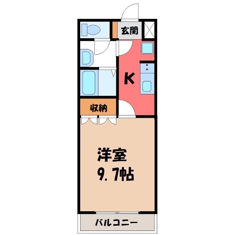 1K( K3畳/洋室9.7畳(*階) ) |