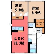 2DK( DK9.1畳/洋室6畳(*階)/洋室6畳(*階) ) |