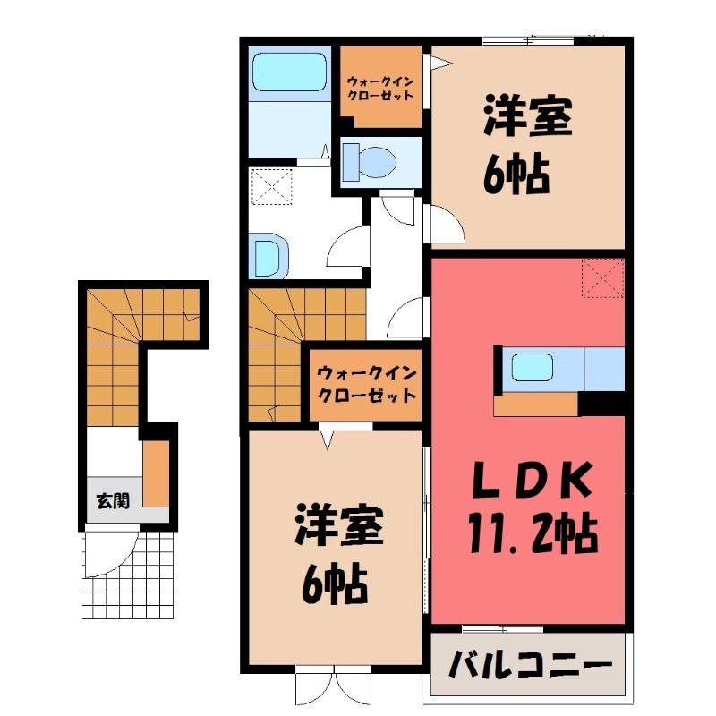 2LDK( LDK11.2畳/洋室6畳(*階)/洋室6畳(*階) ) |