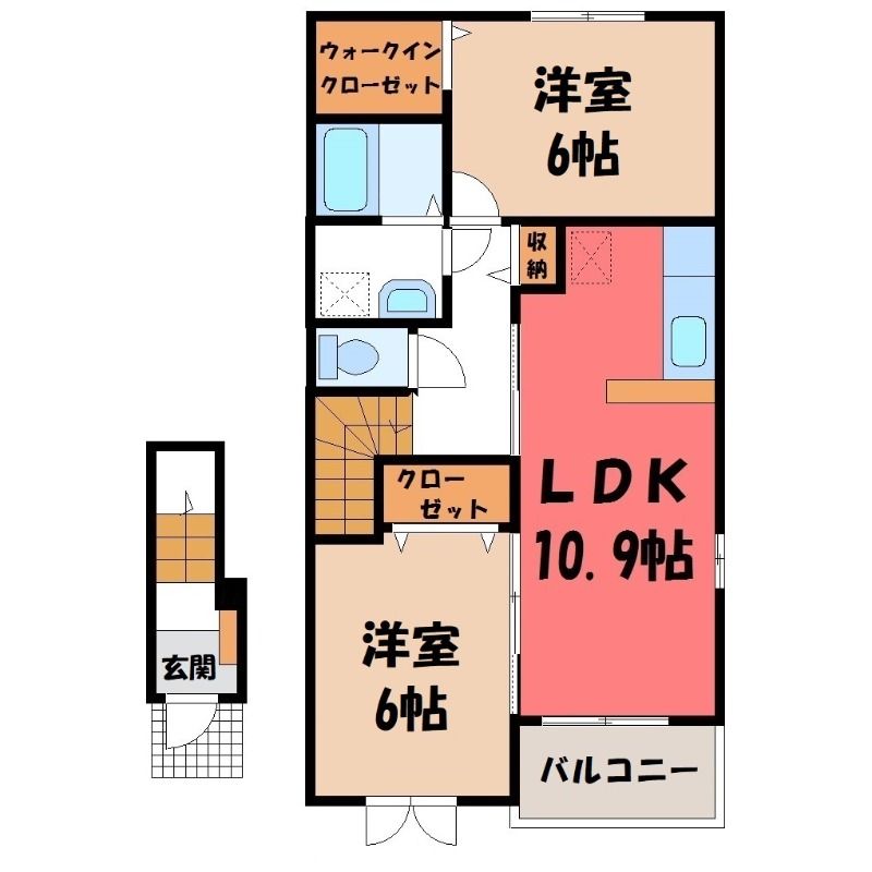 2LDK( LDK10.9畳/洋室6畳(*階)/洋室6畳(*階) ) |