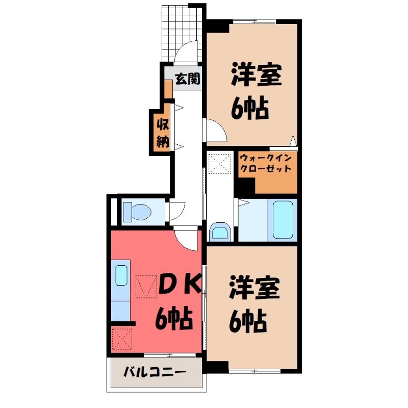 2DK( DK6畳/洋室6畳(*階)/洋室6畳(*階) ) |
