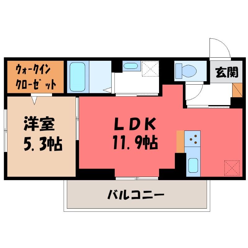 1LDK( LDK11.9畳/洋室5.3畳(*階) ) |