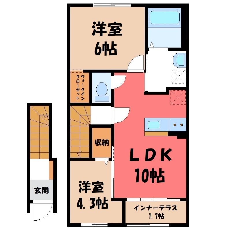 2LDK( LDK10畳/洋室6畳(*階)/洋室4.3畳(*階) ) |