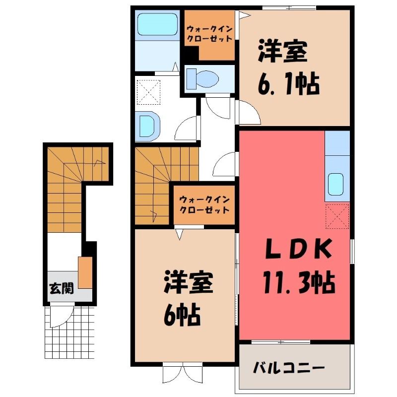 2LDK( LDK11.3畳/洋室6.1畳(*階)/洋室6畳(*階) ) |