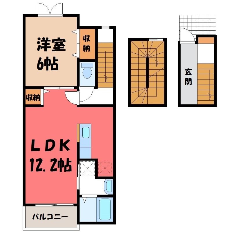 1LDK( LDK12.2畳/洋室6畳(*階) ) |