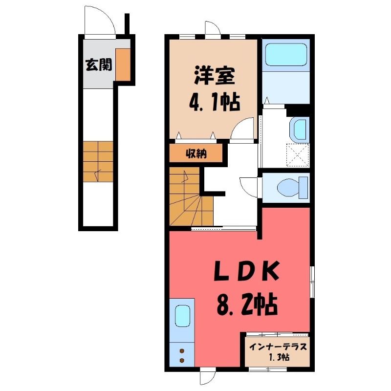1LDK( LDK8.2畳/洋室4.1畳(*階) ) |