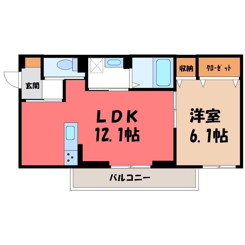 1LDK( LDK12.1畳/洋室6.1畳(*階) ) |