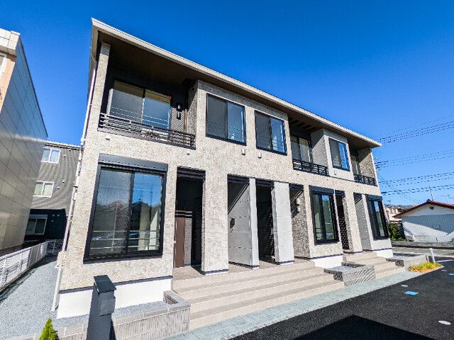 新築築の2階建てのアパートで、お部屋は2階建ての1階部分です。