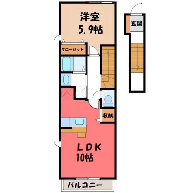 1LDK( LDK10畳/洋室5.9畳(*階) ) |