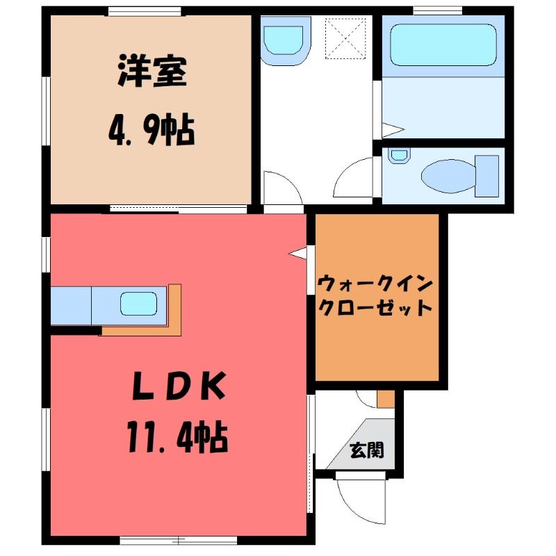 群馬県前橋市富士見町小暮【JR両毛線 前橋駅木の根坂 バス乗車時間30分 停歩6分】にある1LDK賃貸アパートです。