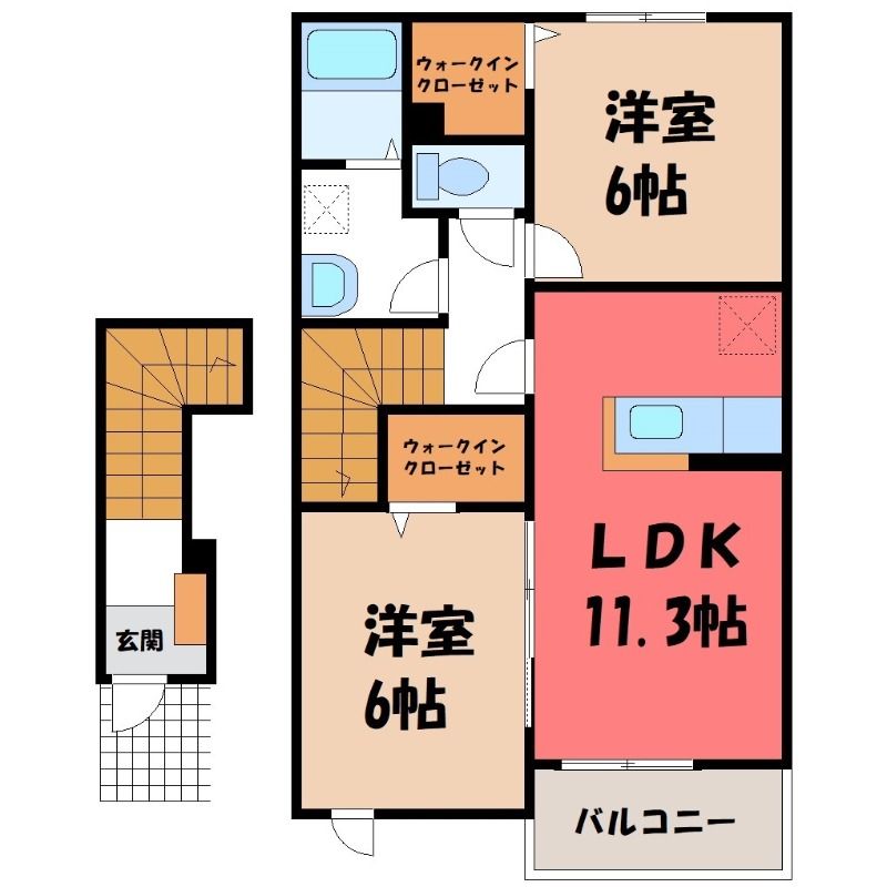 2LDK( LDK11.2畳/洋室6畳(*階)/洋室6.1畳(*階) ) |