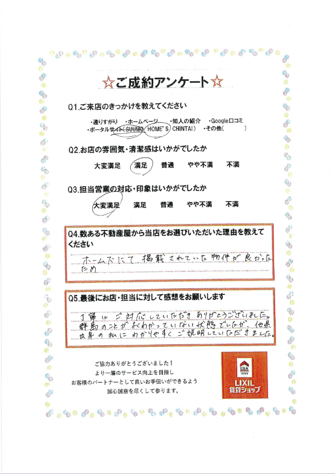 この度は数ある不動産会社からコガネイハウジング前橋店をお選びいただき誠にありがとうございました。