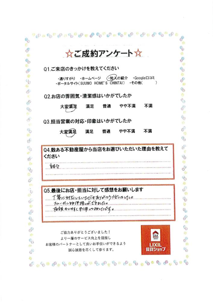 お部屋探しのお手伝いが出来て嬉しかったです。